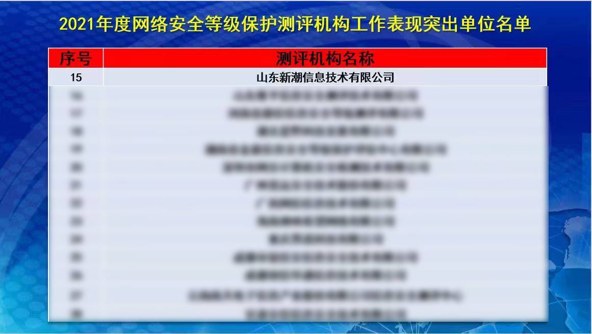 新潮信息是信息安全等級保護(hù)測評機(jī)構(gòu),中關(guān)村信息安全測評聯(lián)盟副理事單位,成立22年來,公司始終秉承“專業(yè)、專注、卓越”的經(jīng)營理念,為國家信息事業(yè)安全提供專業(yè)的服務(wù)。新潮信息分別在20年度、21年度連續(xù)兩年被評為工作突出單位,這是監(jiān)管機(jī)構(gòu)和測評聯(lián)盟對新潮等保測評工作的高度肯定。