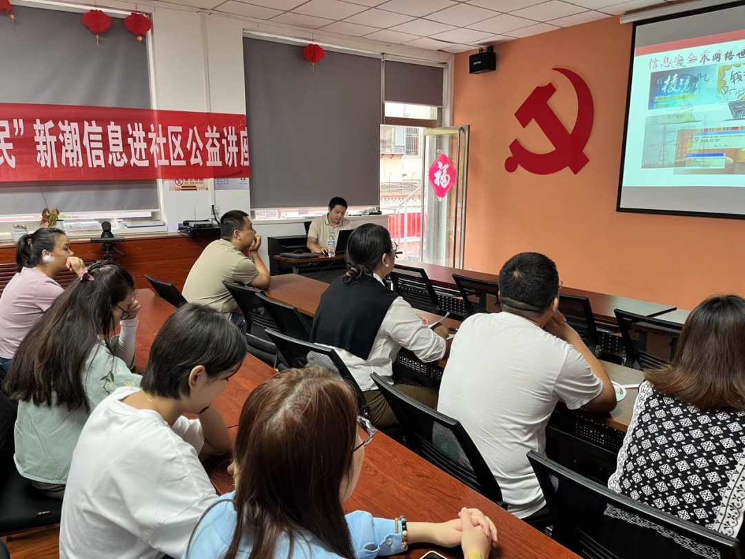 為增強(qiáng)社區(qū)居民的網(wǎng)絡(luò)安全意識和防范能力,預(yù)防網(wǎng)絡(luò)詐騙帶來的經(jīng)濟(jì)損失,營造安全、健康、文明的網(wǎng)絡(luò)環(huán)境。山東新潮信息黨支部在國家網(wǎng)絡(luò)安全宣傳周之際,走進(jìn)社區(qū)開展以“網(wǎng)絡(luò)安全為人民,網(wǎng)絡(luò)安全靠人民”為主題的公益講座。