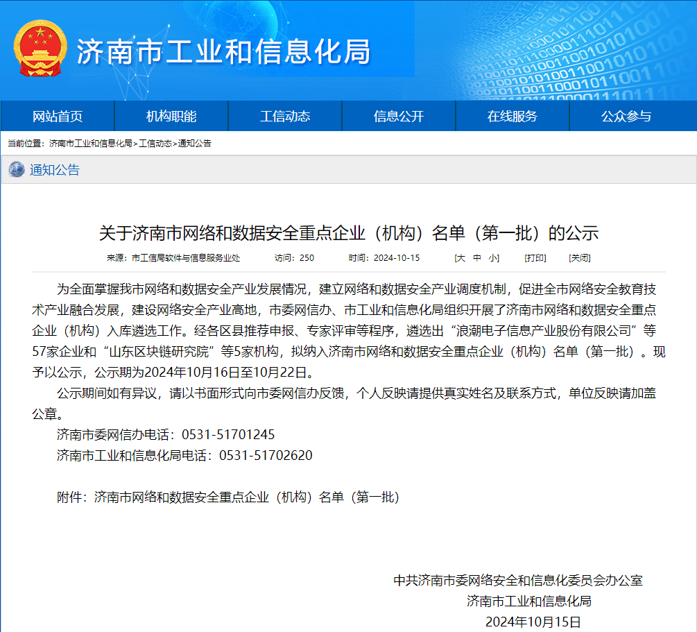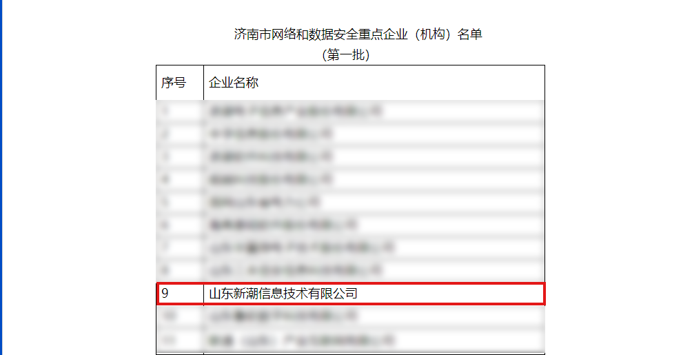 近日,市委網(wǎng)信辦、市工業(yè)和信息化局組織開(kāi)展了濟(jì)南市網(wǎng)絡(luò)和數(shù)據(jù)安全重點(diǎn)企業(yè)(機(jī)構(gòu))入庫(kù)遴選工作。經(jīng)各區(qū)縣推薦申報(bào)、專家評(píng)審等程序,山東新潮信息技術(shù)有限公司(以下簡(jiǎn)稱“新潮信息”)成功入選“濟(jì)南市網(wǎng)絡(luò)和數(shù)據(jù)安全重點(diǎn)企業(yè)名單(第一批)”。