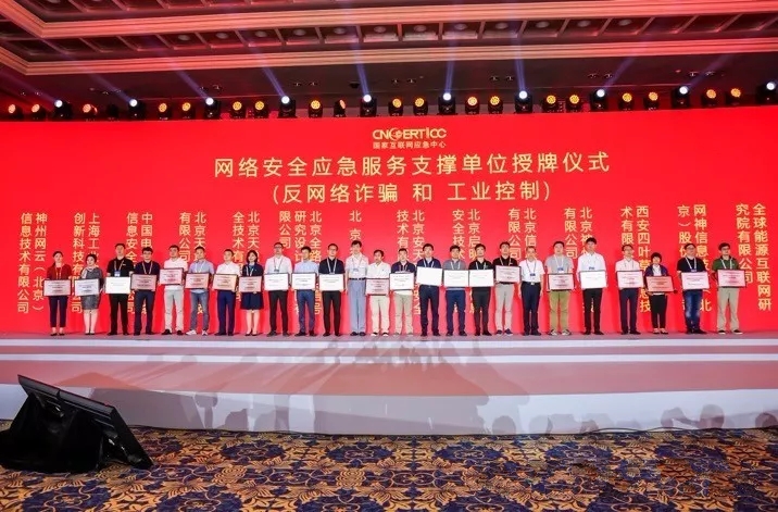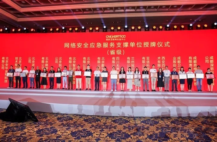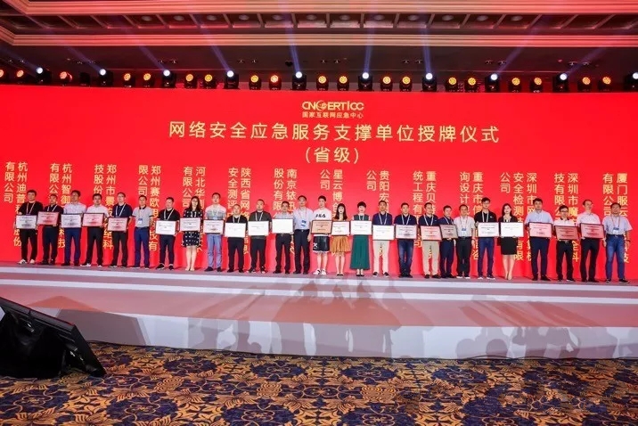 2019年7月17日下午,國(guó)家互聯(lián)網(wǎng)應(yīng)急中心(CNCERT)在2019年中國(guó)網(wǎng)絡(luò)安全年會(huì)上舉行了第八屆網(wǎng)絡(luò)安全應(yīng)急服務(wù)支撐單位授牌儀式,為103個(gè)支撐單位授牌。