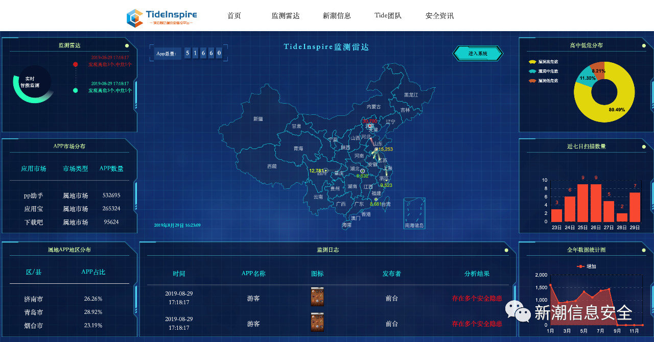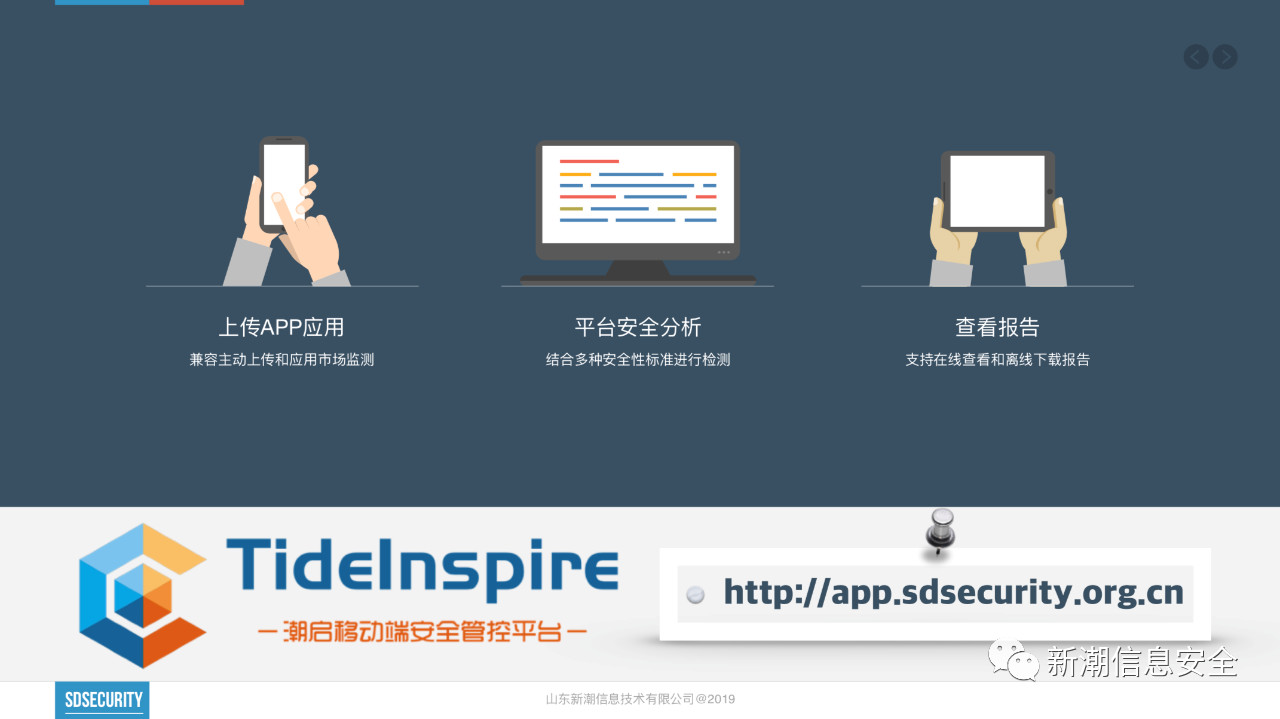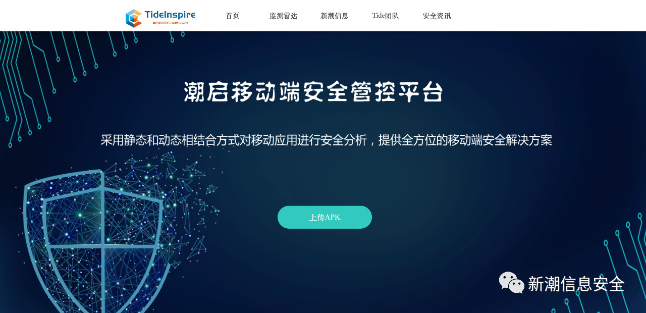 由于網(wǎng)絡安全等級保護制度2.0體系中對于移動互聯(lián)安全提出了專項擴展要求,新潮信息配合網(wǎng)絡安全監(jiān)管機構推出了“潮啟移動端安全管控平臺”,App開發(fā)運營機構可以自主上傳移動端應用程序,通過多引擎的檢測分析,了解移動端程序的安全狀況。