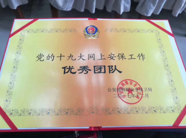 榮獲黨的十九大網(wǎng)上安保工作優(yōu)秀團(tuán)隊(duì)獎(jiǎng)